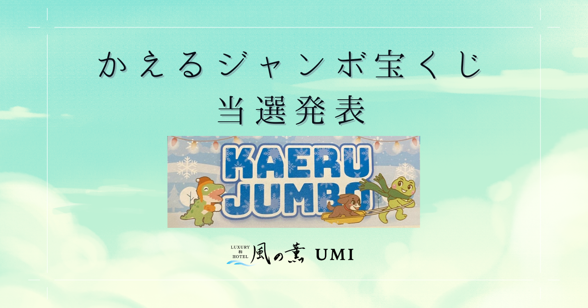 日頃より風の薫UMIをご愛顧いただきまして誠にありがとうございます。かえるジャンボ宝くじ・夏の当選番号はこちらです。 https://www.andaresort.jp/event/kaeru_jumbo/ お手持ちのか […]